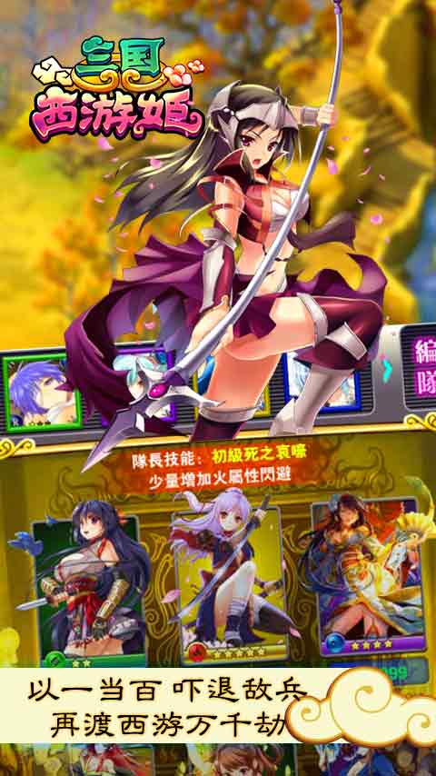 《三國西游姬》創(chuàng)新合并了三國、西游的故事線,西天取經(jīng)和統(tǒng)一天下兩不誤,毫無違和感的同時令玩家眼前一亮!可謂是三國和西游碰撞,武將與妖魔的斗爭!《三國西游姬》使玩家感受不一樣的傳說故事,享受不一樣的視覺沖擊! 游戲特色 1.自動戰(zhàn)斗,解放雙手! 2.戰(zhàn)斗不孤單,女神來相伴! 3.配樂準確,精確配合不同場景! 4.畫面美輪美奐,技能效果震撼! 5.卡牌豐富多樣,組合變化多端! 6.卡牌設計精美,技能特效華麗! 7.操作簡單有趣,但不失策略性! 8.諸多玩家互動,對戰(zhàn)精彩犀利! 9.全武將卡牌女神化,滿足你的眼球! 10.豐富多彩的地圖副本等待玩家去征服!