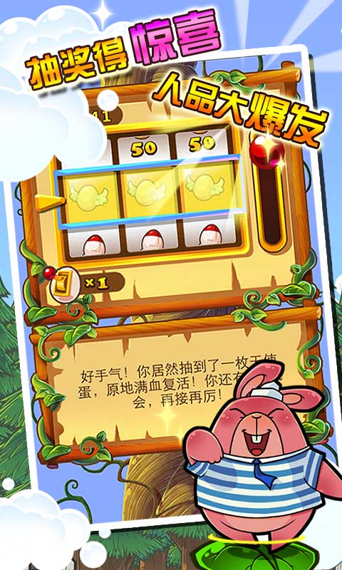 跳>>晃手機(jī);跳>>吃金幣;跳>>踩敵人;跳>>集彩蛋!極簡(jiǎn)便的重力感應(yīng)單手操作,帶來(lái)無(wú)限的成就感與快樂(lè)!不管你是高手還是小白,都能在蛋與藤的暢快游戲中得到無(wú)窮的樂(lè)趣!