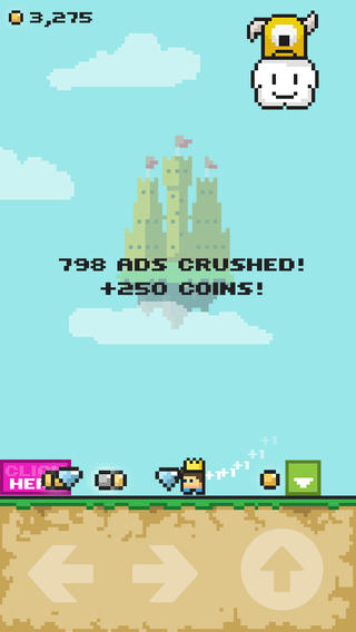 金幣的用途很多,除了營救公主之外,還可以購買游戲內(nèi)的特殊道具,用于解開游玩時(shí)遇到的障礙。如果你沒有足夠的反應(yīng)躲開那些方塊,那么像素小人就會(huì)被方塊困住,又或者壓扁。