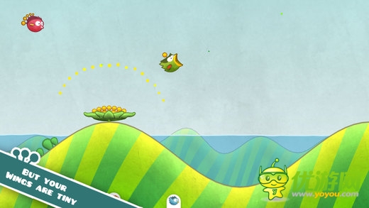 你是否一直夢想著會飛行,但是你的翅膀很小。這款游戲講述的就是一款手繪可愛的小鳥雖然翅膀很小但是可望飛翔,玩家借助山谷的力量來使小鳥《翼飛沖天-Ting Wings》。操作時按住屏幕使得小鳥獲得足夠的加速度,在小鳥向上前松開屏。游戲有兩種模式,想要通過關(guān)還是很考驗?zāi)愕牟僮鞯摹?/p>