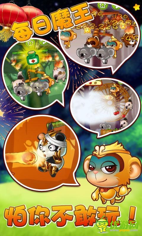 纖細(xì)的樹枝上掛滿了各種可愛小動物,用你手中的一切,砸向你的對手,擊落它們。