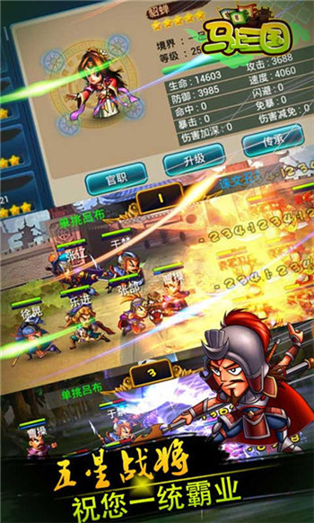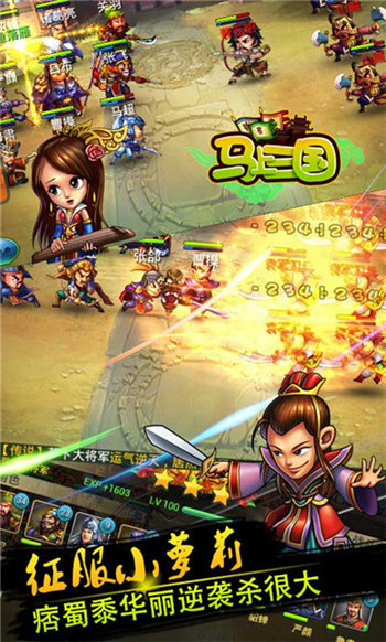 《馬上三國(guó)》具有非同尋常的裝備養(yǎng)成系統(tǒng)和官職系統(tǒng),以及異?;鸨钠ヅ鋺?zhàn)、陣法、將星圖、日常、煉制、進(jìn)階、神符,都將助玩家打造屬于自己的NB武將。并且百余名將搞笑詼諧的戰(zhàn)斗形象,大招必殺時(shí)面部特寫(xiě),讓你在調(diào)兵遣將之余享受戰(zhàn)斗帶來(lái)的喜感!