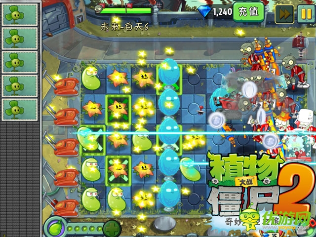 未來世界里,植物與僵尸的戰(zhàn)斗如火如荼——激光豆大戰(zhàn)電磁盾僵尸電光四射,充能柚子對(duì)抗機(jī)甲路障僵尸熱火朝天……當(dāng)瘋狂戴夫問到:炸僵尸哪