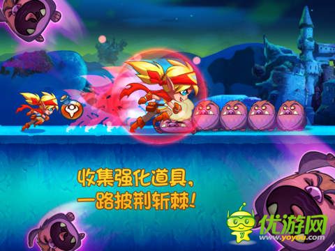 - 收集閃爍著光芒的寶物和體能強(qiáng)化物品來幫助您的冒險(xiǎn)之旅!