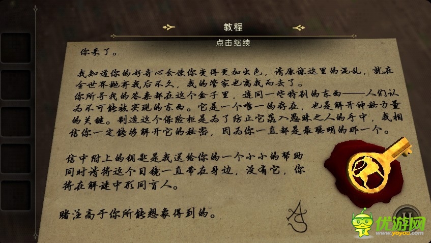 如果你是解謎游戲的愛好者,這款未上鎖的房間(The Room)你一定不能錯(cuò)過。這款經(jīng)典的3D密室逃脫類游戲,將為你帶來一段充滿創(chuàng)意,離奇古怪的旅程,旅程里有唯美的場景,有危險(xiǎn)的陷阱也有神秘的氛圍,當(dāng)然少不了引人入勝的謎題。游戲的主角在一個(gè)封閉的房子里醒來,然后想盡各種辦法出去,隨著劇情的深入,也許,更大的陰謀就會浮出水面。感謝撲家漢化組的漢化工作。下載注意:安卓版為漢化版,IOS版為英文版哦!