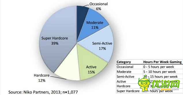 近一半玩家每周把近一半的時間消耗在MMORPG游戲上。社交網站游戲占9%,網頁游戲5%左右。
