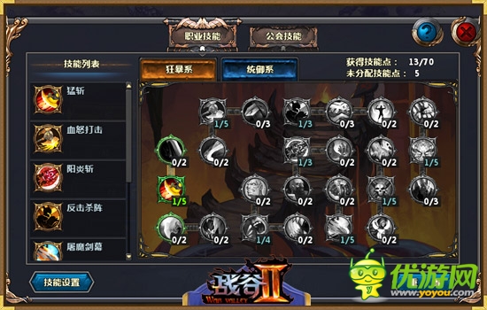 基于多元化角色成長(zhǎng)的理念,《戰(zhàn)谷Ⅱ》的精彩不止如此,在角色等級(jí)達(dá)到50級(jí)時(shí),玩家將迎來(lái)角色的第二技能樹開啟,根據(jù)職業(yè)不同,玩家可同時(shí)擁有兩套不同職業(yè)的進(jìn)化之路。如戰(zhàn)士職業(yè):或掌控狂暴之力,或戰(zhàn)御天下,盡情體味“多元化職業(yè)”的淋漓快感。