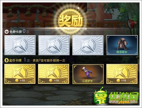 2.如果是金幣或者獎(jiǎng)勵(lì)就翻第二張卡牌,這時(shí)候天天炫斗翻牌技巧出裝備的幾率大概是20%,已經(jīng)遠(yuǎn)勝普通的翻牌概率了。通過(guò)不斷的這種變化,你總會(huì)獲得極品裝備的。