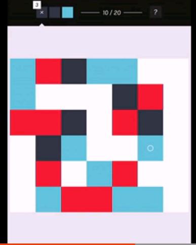 個(gè)人感覺玩法類似于2048,消除類的游戲。這款游戲要注意的就是同樣的顏色是可以消除的。