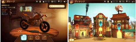 在本作中,跟其他游戲一樣,玩家必須隨著故事的進行,一邊解決城鎮(zhèn)居民的委託一邊攻略世界中的關(guān)卡并收集零件。而攻略關(guān)卡當然就是用越野車來進行啰!這些關(guān)卡中各有著不同的過關(guān)條件,有單純的抵達終點就好,也有必須耍特技以及與敵人競速的關(guān)卡。不過操作方式非常簡單,只要觸碰畫面右下的加速減速按鈕以及畫面左下的后翹前傾按鈕即可。