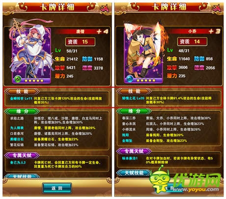 6張上陣卡牌中,如果你缺少技能強悍的高攻擊卡牌,最好在隊伍里安排一張有回復技能的奶媽卡牌。觀音菩薩、唐僧、大喬、小喬、華佗、紫霞仙子等等,如果有幸抽卡抽到,趕緊培養(yǎng)起來吧!