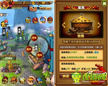 除了武將的招募,《媚三國》里還有一個(gè)掙外快的場(chǎng)所——商棧。玩家可在集市上通過秋糧、布匹、礦石、軍資等物品的低買高賣獲取銅錢,貨品價(jià)格經(jīng)常變動(dòng),找準(zhǔn)時(shí)機(jī)倒賣便可大賺一筆。
