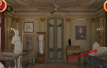 3.拿到膠帶后,點擊房間內的石膏人像,把它手上的那個白色棍子拿下來。
