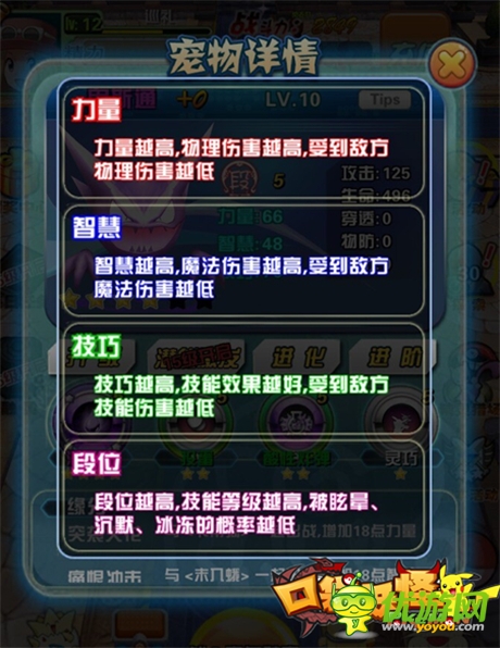 技能可謂是游戲中十分重要的內容,接下來就讓小編帶你來看看如何選擇寵物技能吧!要選擇技能那就先要了解寵物的屬性,寵物的基礎屬性可以分為四種:力量、智慧、技巧、段位而這四種屬性對寵物的影響基本如下圖