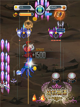 這只章魚(yú)的出現(xiàn)讓很多玩家的女神在第二關(guān)卡中就被淘汰,不過(guò)征服、躲避大章魚(yú)并不難,掌握它的下滑節(jié)奏,或者使用無(wú)敵道具,也就無(wú)所畏懼了。因?yàn)檫@才只是《戰(zhàn)機(jī)物語(yǔ)》的第二關(guān)呢,如果這都贏不了,還得如何挑戰(zhàn)后面的關(guān)卡呢?