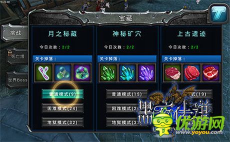 寶藏系統(tǒng)不單單是某一種類型的探索挑戰(zhàn)地圖,系統(tǒng)根據(jù)掉落獎勵的不同,共分為三大類寶藏地圖:月之秘藏掉落的是升級技能提升戰(zhàn)斗力的最重要材料——基因;神秘礦穴所掉落的為鍛造裝備必備的強化材料;而上古遺跡將掉落我們萌萌噠的守護精靈所需要的喂養(yǎng)飼料。三大寶藏地圖也根據(jù)傳統(tǒng)RPG模式分了普通模式、困難模式、地獄模式來等待玩家們的挑戰(zhàn),隨模式的難度掉落而更高品級的各類材料!