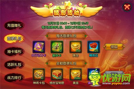 比如開服的登錄活動(dòng),只要大家在活動(dòng)期間每天保持登錄,什么豐厚的精煉石啊黃金啊行動(dòng)力卡那是花不完的。告訴大家一個(gè)小訣竅把,大把的黃金拿到手不要急著亂花,游戲“鴻運(yùn)”每次都有一次抽獎(jiǎng)機(jī)會(huì),用27黃金去轉(zhuǎn)盤,百分百獲取更多黃金,月卡的會(huì)員額外增加兩次機(jī)會(huì),用錢滾錢,就是這么任性!每天登錄一次游戲,不僅有登錄獎(jiǎng)勵(lì)拿,簽到活動(dòng)的獎(jiǎng)勵(lì)也是非常豐厚的,所以玩萌將來了,一次登錄兩次獎(jiǎng)勵(lì),全勤禮包更是價(jià)值上千。往下拉還有各種各樣的活動(dòng)黃金什么的也非常多,所以大家不要忘了,只拿一個(gè)登錄獎(jiǎng)勵(lì),那就犯傻了。