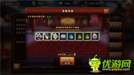 4. 家族祈福:每天可以祈福2次。祈福有概率獲得各種寶石和高級魂卡;