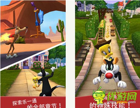 《兔八哥跑酷》是一款以兔八哥為主角的動(dòng)畫風(fēng)格跑酷游戲。游戲中集結(jié)華納旗下經(jīng)典動(dòng)畫人物,英雄也好反派角色也好,全部再次閃亮登場(chǎng)!玩家操縱兔八哥、翠笛鳥、BB 鳥等主角們跑酷,后面則分別跟著獵人、歪心狼和傻大貓等死對(duì)頭們。