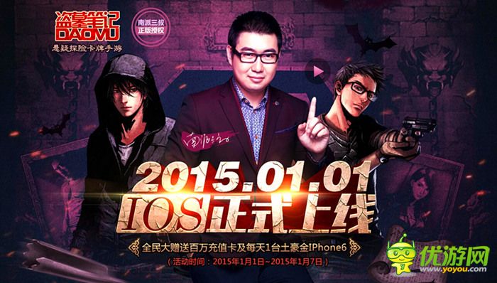 2015年1月1日10點,年度盜墓懸疑探險手游大作——天拓游戲《盜墓筆記》正式登陸iPhone, iPad 和 iPod touch,在App Store獨家首發(fā)!作為有南派三叔正版授權(quán)的首款“盜墓流”手機(jī)游戲,小伙伴將親自見證十年“瓶邪”的等待,和他們一起挖坑,一起摸金,一起打粽子,一起經(jīng)歷各種匪夷所思的冒險。用我一生,換你十年天下無邪!!!