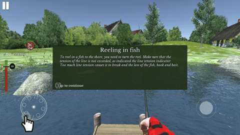 釣魚——要把魚卷到岸邊,你需要轉動卷軸。確保線材的張力沒有超出線材張力指示器所示的范圍。過于緊張的線會導致斷裂,失去魚,魚鉤和魚餌