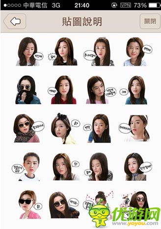 雖然這款貼圖是需要付費的,但是里面真的有太多全智賢在「來自星星的你」劇中的經(jīng)典表情!而且全智賢在這部劇里的演技實在讓人眼睛為之一亮,一下子搞笑、一下子深情的演出,收放自如的演技讓粉絲們都看得好過癮呢!不過粉絲們可要注意了,這款貼圖是韓國限定的??!想要獲得這款貼圖的話就要用別得方法才能取得啰~